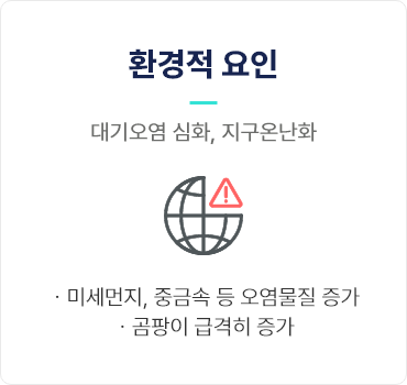 공기 중에 미세먼지, 중금속 등의 오염물질과 지구 온난화로 인하여 곰팡이가 급격히